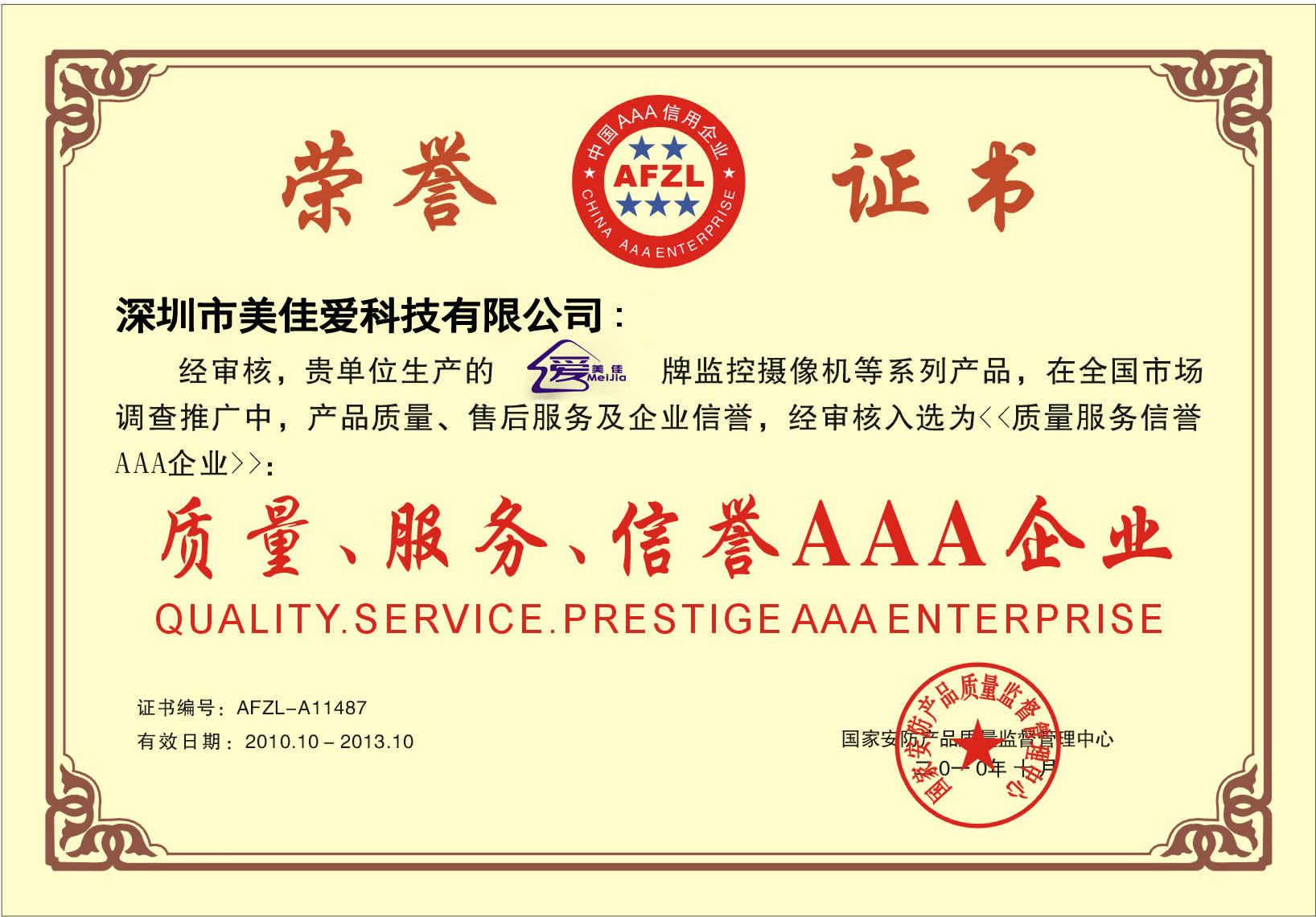 質(zhì)量、服務、信譽AAA企業(yè)證書副本
